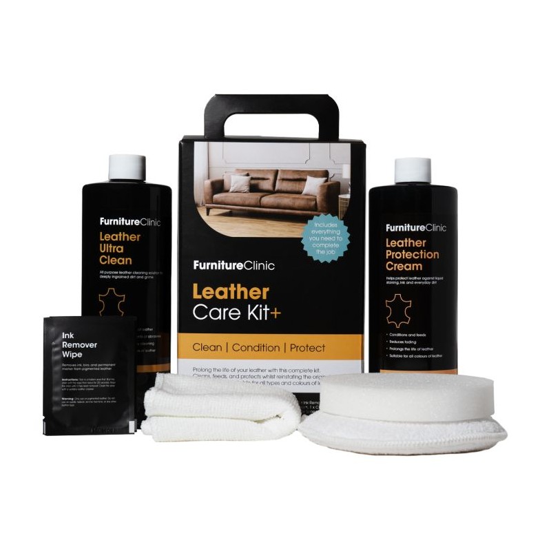 El LEATHER CARE KIT es un kit que consta de dos partes, diseñado para limpiar, acondicionar y proteger todos los artículos de cuero. El kit está compuesto por: Leather Ultra Clean (Limpiador para cuero): Leather Protection Cream (Crema de Protección): Esponja y Paño: |